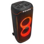 - نورپردازی متناسب با موسیقی: نورپردازی امضای JBL PartyBox که به طور خودکار با موسیقی هماهنگ میشود و شامل افکتهای نوری منحصربهفرد است.