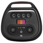در بخش فوقانی اسپیکر، پنل کنترل طراحی شده که دسترسی آسان به تنظیمات صدا، نورپردازی و اتصالات را فراهم میکند. دو صفحه بزرگ برای کنترل حجم صدا و نورها وجود دارد و دکمههای اتصال بلوتوث، افزایش بیس و اتصال چند اسپیکری نیز در دسترس هستند. JBL PartyPad، واقع در بالای اسپیکر، امکان ایجاد افکتهای صوتی DJ باکیفیت با استفاده از سه حرکت لمسی ساده را میدهد، که تجربه موسیقی را شخصیسازی و تعاملیتر میکند.